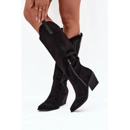 Kozaki Kowbojki Damskie Ze Zdobieniem Na Słupku Czarne Jovina