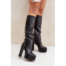 Kozaki Na Słupku I Platformie Z Eko Skóry Czarne Felilorn