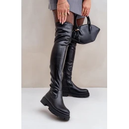 Kozaki Za Kolano Na Płaskim Obcasie Czarne Feliri