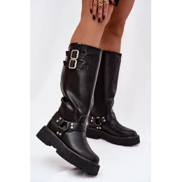 Kožené dámské kozačky s přezkami zateplené Big Star OO274A180 černé