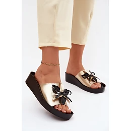 Kožené dámské pantofle s ozdobou S.Barski KV61-6044 Zlaté