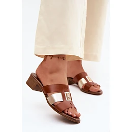 Kožené dámské sandály na podpatku Zazoo 40517 hnědé