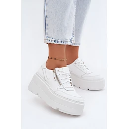 Kožené dámské tenisky na masivní platformě Zazoo N1084 Bílé