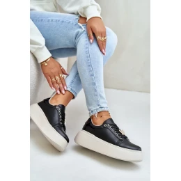 Dámske kožené tenisky na platforme s brošňou Vinceza Black
