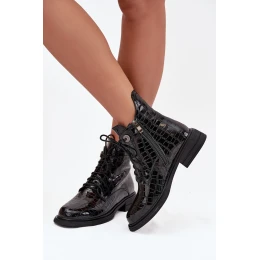 Kožené lakované boty s raženým vzorem vyhřívané černé Juviane