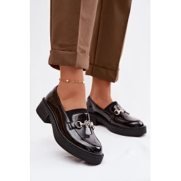 Kožené lakované mokasiny dámské s ozdobným detailem Vinceza 39985 černé