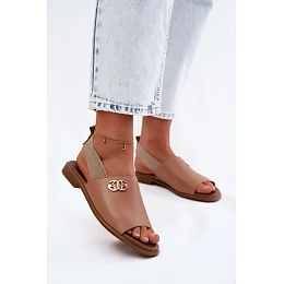 Kožené sandály se zlatým detailem Zazoo 40473 světle hnědé