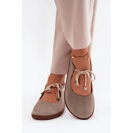 Kožené semišové baleríny Barefoot na šněrování Zazoo 021 Cappuccino