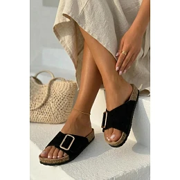 Kožené semišové dámské pantofle s přezkou černé Beryl