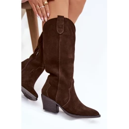 Kožené cowboy boty vyrobené z vysoce kvalitního přírodního semiše jsou ideční volbou pro ženy, které ocení spojení elegance a módního charakteru. Jejich jedinečný design inspirovaný západním stylem činí z nich působivý prvek každého outfitu. Model s vkládáním a zipem na spodní části holínky usnadňuje obouvání a sundávání, přičemž zachovává elegantní tvar. Umístěny na stabilním, zúženém podpatku typu sloup, zajišťují pohodlí při chůzi a zároveň lehce zeštíhlují nohy a dodávají postavě lehkost. Špičaté nosy zdůrazňují ženský charakter obuvi, dodávají jí elegantní výraz. Vnitřek kozaček je vyhřátý měkkým kožešinovým límcem, který zaručuje tepelný komfort i v chladnějších dnech. Výborně se hodí k šatům, sukním i úzkým kalhotám. Při výběru velikosti se prosím řiďte tabulkou velikostí. Při výběru velikosti se řiďte tabulkou velikostí.