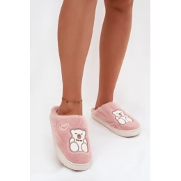Kožešinové pantofle s medvědem růžové Noralie