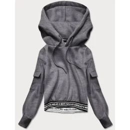 Krátka šedá dámska tepláková mikina so sťahovacími lemami (26030)