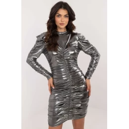 Elegantné mini šaty s oloveným strihom, ktoré sú ideálne na špeciálne príležitosti. Sú vyrobené z hladkej tkaniny z polyesteru a viskózy, poskytujú pohodlie a krásne sa prispôsobia postave. Šaty majú dlhé rukávy a okrúhly výstrih, čo im dodáva klasický a zároveň štýlový vzhľad. Vďaka žiadnemu zapínaniu sa ľahko obliekajú a jemné ozdobné záhyby im dodávajú charakter a ľahkosť, čím zvýrazňujú prednosti postavy.
