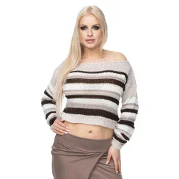 Krátky pruhovaný sveter s dlhými rukávmi. Lodičkový výstrih. Mäkký sveter z priadze, starostlivo dokončený.