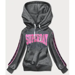 Tmavosivá krátka dámska mikina s nápismi (26014)
