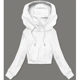 Krátka biela tepláková mikina s kapucňou (8B939-1)