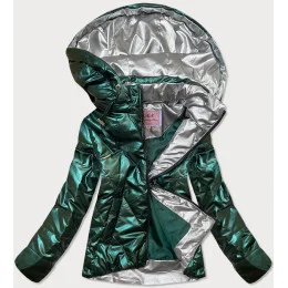 Krátka lesklá dámska bunda v fľaškovo zelenej farbe (W586)