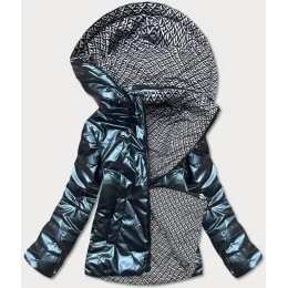 Tmavomodrá krátka lesklá dámska bunda (W586-1)