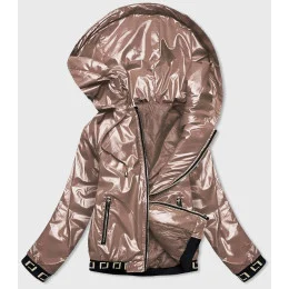 Krátka béžová dámska bunda s kapucňou (B9787-12)