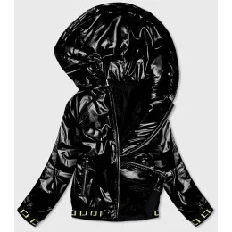 Krátka čierna dámska bunda s kapucňou (B9787-1)