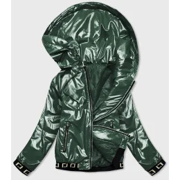 Krátka zelená dámska bunda s kapucňou (B9787-10)