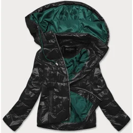 Čierno-zelená dámska bunda s farebnou kapucňou (BH2005)