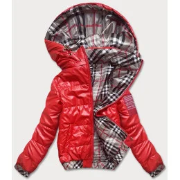 Krátka červená dámska bunda s ozdobným lemovaním (B8030-4)
