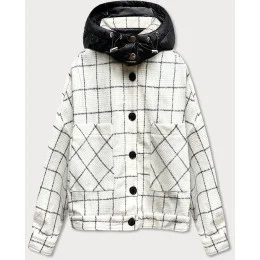 Krátka károvaná košeľová bunda vo farbe ecru (AG3-1839)