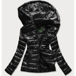 Krátka čierna prešívaná dámska bunda s kapucňou (CAN-333)