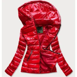 Krátka červená prešívaná dámska bunda s kapucňou (CAN-333)