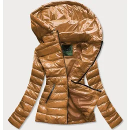 Krátka prešívaná dámska bunda v horčicovej farbe s kapucňou (CAN-333)