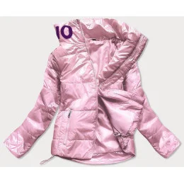 Krátka ružová prešívaná dámska bunda so stojačikom (B9567)