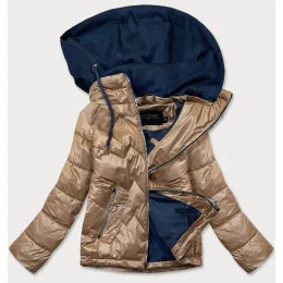 Karamelovo / modrá dámska bunda s kapucňou (BH2003)
