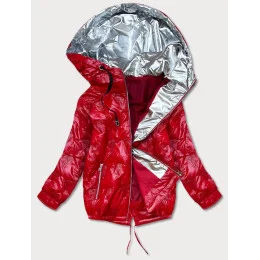 Červená dámska bunda s kapucňou a vytlačovaným vzorom (B9765-4)