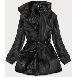 Čierna kožušinová bunda so stojačikom (GSQ2228)