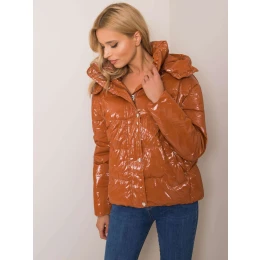 Hnedá zimná bunda s kapucňou .
