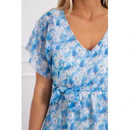 Kvetinové šaty so zaväzovaním v páse modrej