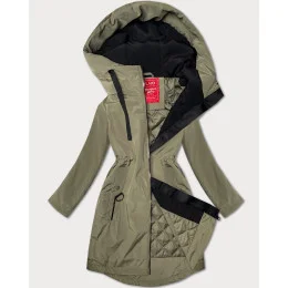 Ľahko zateplená dámska bunda v olivovej farbe s kapucňou LHD (LHD-24589)