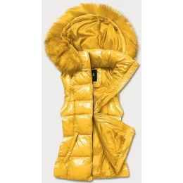Žltá lakovaná dámska vesta s kožušinou (DK027-86)