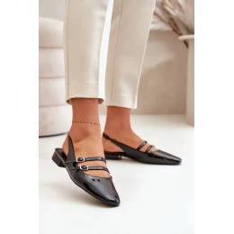 Damskie baleriny wykonane z eko skóry. Osadzone na niskim obcasie. Noski w migdał. Odkryta pięta. Miękka wkładka zapewni wygodę na każdym korku. Z przodu dwa cienkie, regulowane paski, które zwiększą stabilizację stopy. Niezwykle modny fason, który powinien znaleźć się w Twojej szafie! Podczas wyboru rozmiaru prosimy sugerować się tabelą rozmiarów.