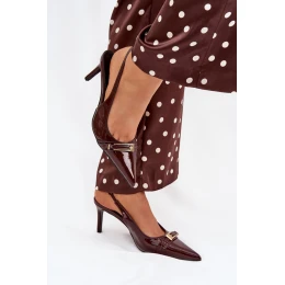 Lakierowane Czółenka Na Szpilce Ze Złotą Klamrą Czekoladowe Vivae
