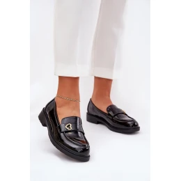 Lakierowane Mokasyny Damskie Z Serduszkiem S.Barski HY51-379 Czarne