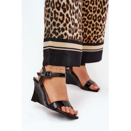 Lakierowane Sandały Damskie Na Koturnie Czarne Vliraya