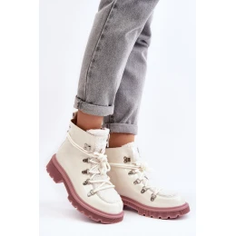 Lakierowane Skórzane Botki Trapery Damskie GOE MM2N4083 Białe