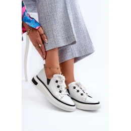 Lakierowane Sneakersy Damskie Skórzane D&A LR535 Białe
