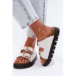 Lakované dámské pantofle Ploché se zlatými sponami Lee Cooper LCW-26-35-4460L bílé