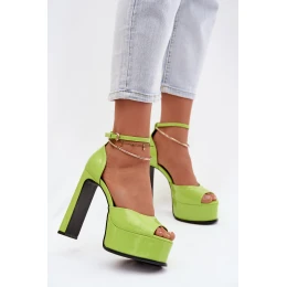 Dámské sandály z eko kůže, umístěné na vysokém sloupkovém podpatku a platformě. Zapínají se na přezku s nastavitelným páskem, který lze snadno sundat, což zajišťuje pohodlí a přizpůsobení. Tento model se navíc vyznačuje ozdobnou náramkem, který jim dodává jedinečné kouzlo. Ideální na večerní výlety a zvláštní příležitosti. Při výběru velikosti se řiďte tabulkou velikostí.