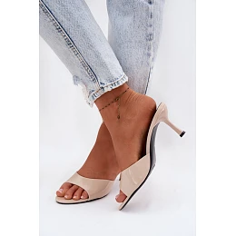 Lakované pantofle z imitace kůže na podpatku Béžové Melissea