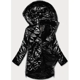 Ľahká čierna lesklá dámska bunda s lemovkami (LD7258BIG)