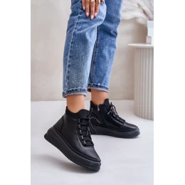 Lekkie Skórzane Buty Sportowe Na Platformie Artiker 55C1041 Czarne